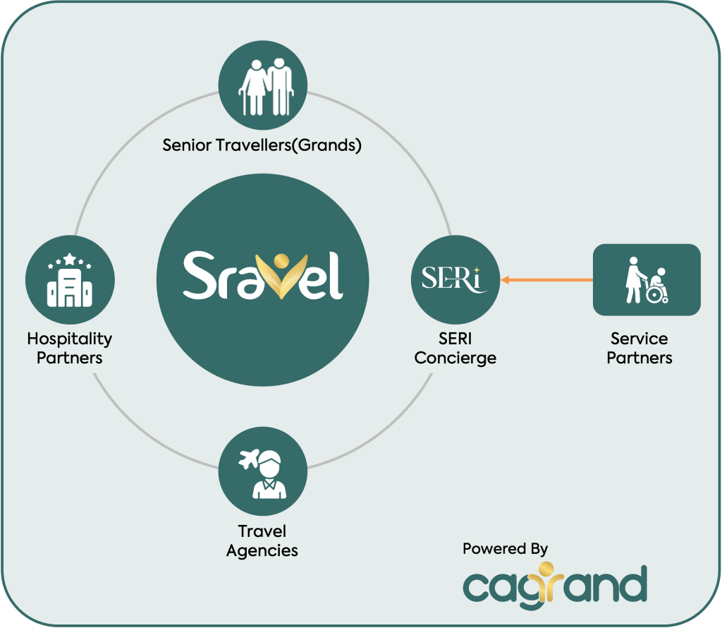 caGrand connects senior travelers, accommodation providers, and concierge services in one integrated platform. With SRAVEL for discovering trusted stays and SERi for personalized travel support, we foster collaboration that delivers safe, comfortable, and worry-free journeys for seniors.
